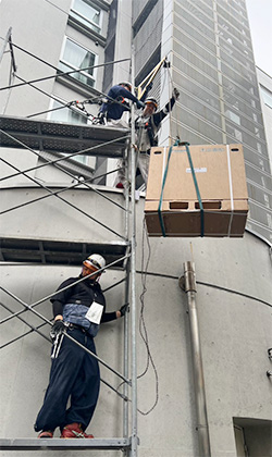 現場の構造や搬入ルートは複雑な場合も多く、特に重量物の搬入・据付工事は